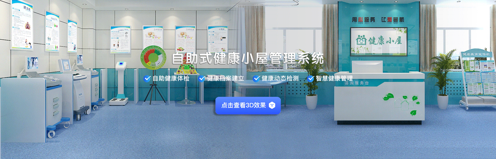 健康小屋系統(tǒng)是指通過軟件技術、物聯(lián)網、通訊技術,把多種專業(yè)級醫(yī)療健康設備整合在一個溫馨、舒適的環(huán)境下,使體檢者可以自主、輕松、愉快地選擇體檢項目,并實現(xiàn)一系列生理參數的檢測、自動評估、健康指導、健康宣教等功能。重在培養(yǎng)自我健康管理意識,樹立健康生活習慣。