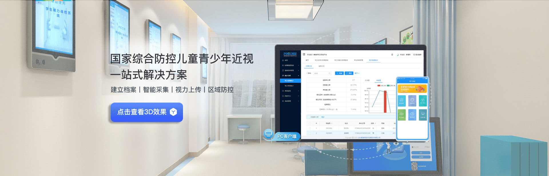普瑞森青少年視力防控平臺(tái)是運(yùn)用互聯(lián)網(wǎng)、物聯(lián)網(wǎng)和移動(dòng)通信等技術(shù)快速篩查青少年視力并建立健康檔案的系統(tǒng)。由近視防控?cái)?shù)據(jù)管理軟件系統(tǒng)、電子視力檢測(cè)儀、視力篩查儀組成,通過(guò)視力檢測(cè)篩查設(shè)備,自助采集匯總數(shù)據(jù)并上傳至云平臺(tái)。支持視力數(shù)據(jù)采集、查詢(xún)、統(tǒng)計(jì)、分析、存檔于一體,通過(guò)分析體檢者視力發(fā)展趨勢(shì),對(duì)不同視力人群進(jìn)行健康干預(yù)和指導(dǎo)。
