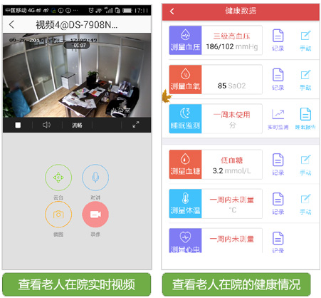 家屬可通過(guò)智能化管理系統(tǒng)清晰明了的看到老人每天的身體情況、護(hù)理情況、日常活動(dòng)、各項(xiàng)消費(fèi)及可用余額;還能查看老人視頻、照片、進(jìn)行在線充值繳費(fèi)。