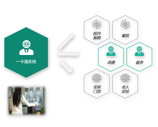 能在解決養(yǎng)老機(jī)構(gòu)的管理的繁瑣及復(fù)雜,將安保門禁、老人定位、購(gòu)物、餐飲、服務(wù)、消費(fèi)集合于一體,實(shí)現(xiàn)一卡通的管理模式,一張老人卡記錄老人的行動(dòng)軌跡及所有的消費(fèi)明細(xì)